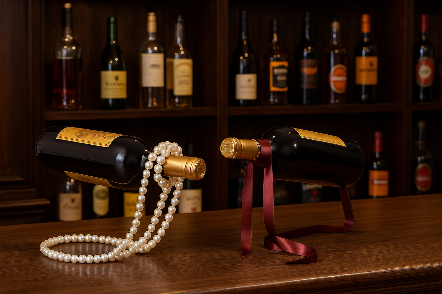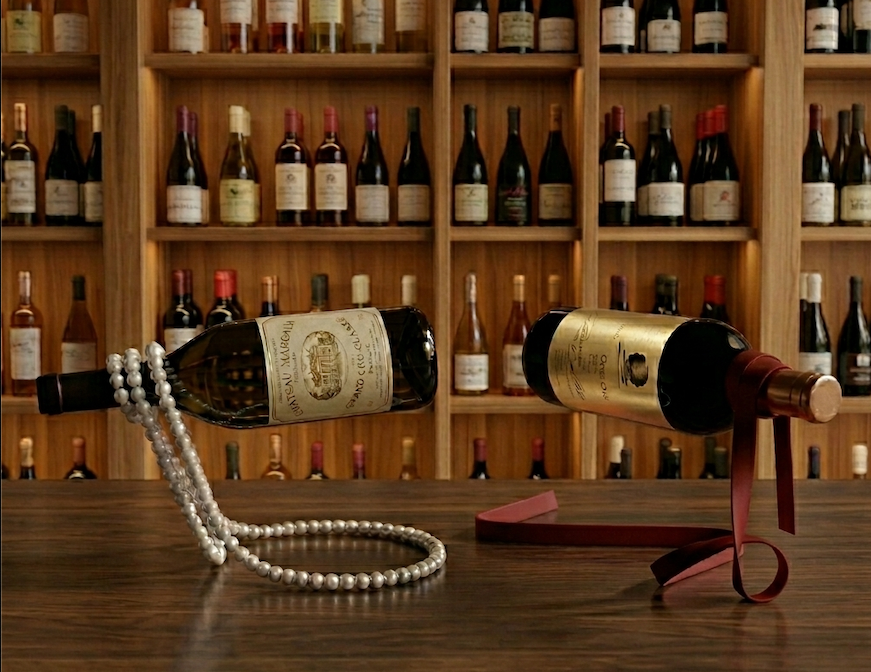 Its flowing, sculptural ribbon construction creates dynamic visual interest while keeping bottles stable, adding a premium, gift-worthy touch to any interior.